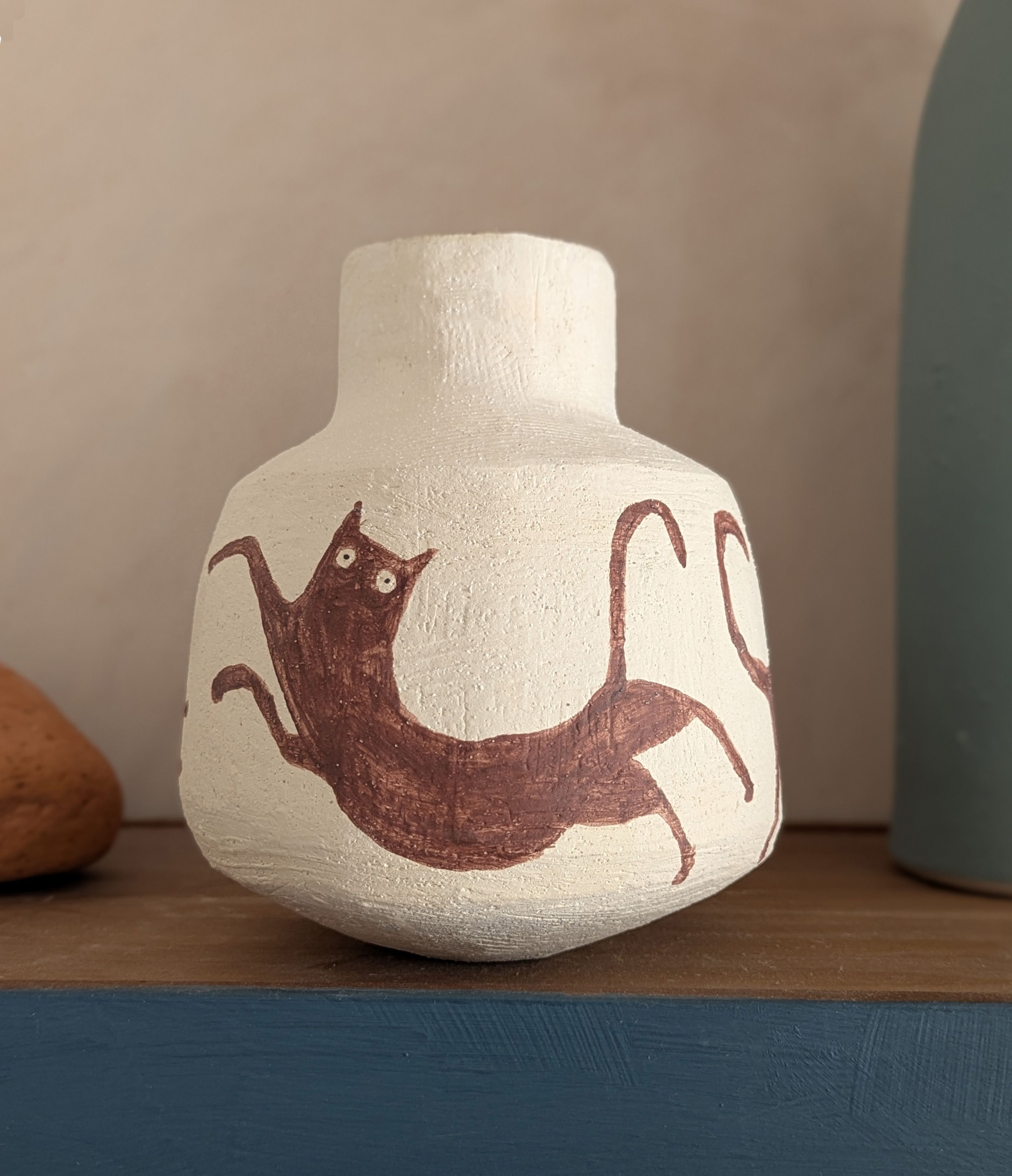 Once your form is complete, you’ll decorate your piece using coloured slips — a liquid form of clay — allowing for gentle pattern and surface detail to emerge.